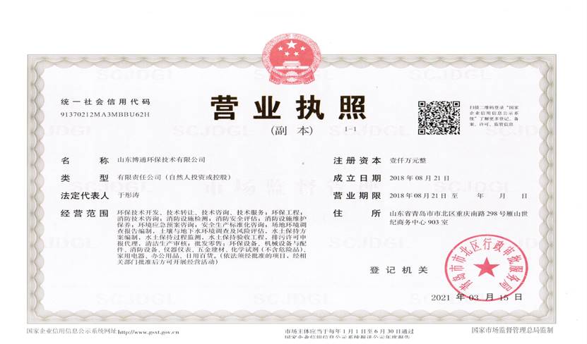山東博通環(huán)保技術(shù)有限公司是一家專業(yè)從事環(huán)保、安全、消防的多元化技術(shù)服務(wù)公司,公司致力于打造專業(yè)的技術(shù)服務(wù)團(tuán)隊,立足青島,輻射山東,服務(wù)范圍涵蓋:環(huán)保技術(shù)開發(fā)、技術(shù)轉(zhuǎn)讓、技術(shù)咨詢、技術(shù)服務(wù);環(huán)保工程;消防技術(shù)咨詢;消防設(shè)施檢測;消防安全評估;消防設(shè)施維護(hù)保養(yǎng);環(huán)境應(yīng)急預(yù)案咨詢;安全生產(chǎn)標(biāo)準(zhǔn)化咨詢;場地環(huán)境調(diào)查報告編制,土壤與地下水環(huán)境調(diào)查及風(fēng)險評估,水土保持方案編制,水土保持過程監(jiān)測,水土保持驗收工程,排污許可申報代理,清潔生產(chǎn)審核;批發(fā)零售:環(huán)保設(shè)備、機(jī)械設(shè)備與配件、消防設(shè)備、儀器儀表、五金建材、化學(xué)試劑(不含危險品)。公司具有“建設(shè)手續(xù)一站式辦理,安環(huán)問題一條龍解決”的獨(dú)特優(yōu)勢,可為客戶提供高效、優(yōu)質(zhì)的安全、環(huán)保、消防管家技術(shù)服務(wù)。